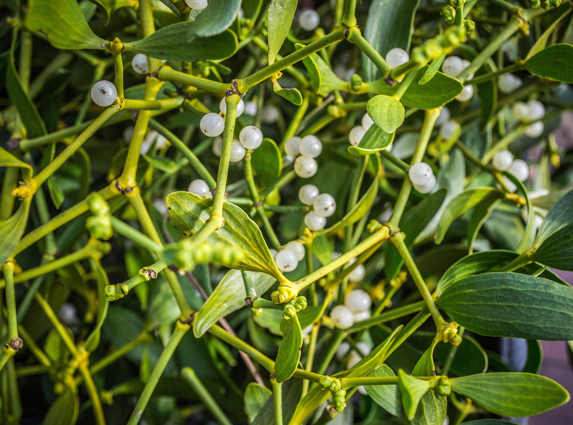 Back in December ’25 I attended a talk by Dr Michael Jones, former lecturer in Botany at Newman University in Birmingham and Mistletoe expert. The Mistletoe we commonly associate with Christmas in the UK, namely Viscus album, grows only in the south of England, particularly in the counties of Worcestershire and Herefordshire. Whilst happy with cold winters, it likes an average July temperature of 16 degrees. Seeds are dispersed by the aptly named Mistletoe Thrush but also Blackcaps, who gather the berries for food..