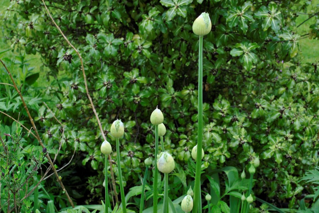 The alliums are a bit later this year but now about to burst into flower.