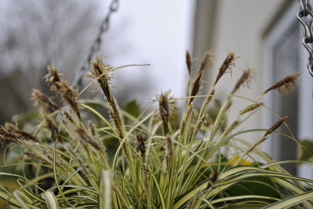 Something I haven’t witnessed before is stripy Carex ‘flowering’ in my winter hanging basket. I just hope I don’t end up with seedlings popping up everywhere!