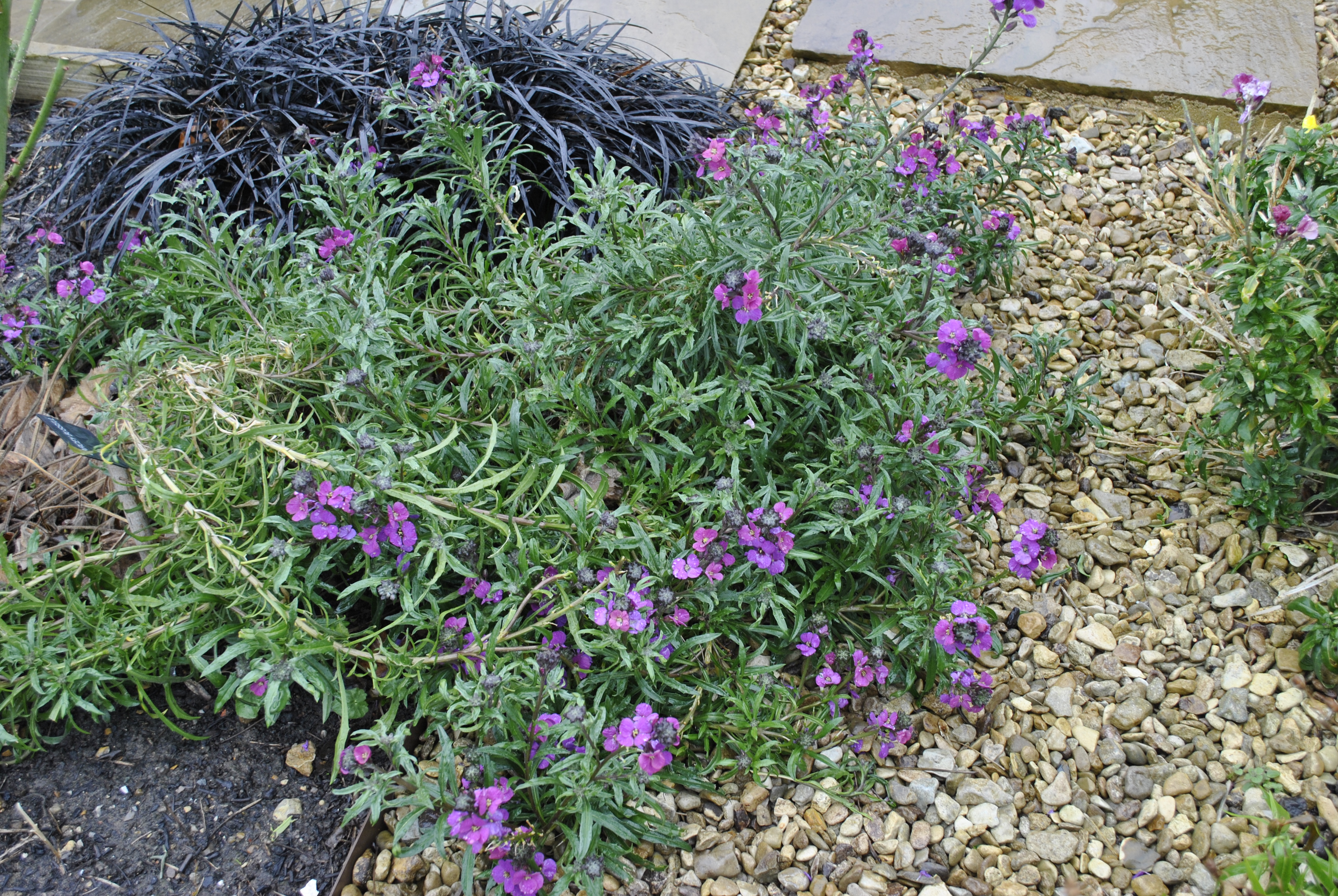 Erysimum ‘Parrish’s’ continues to flower as it has done all winter long. I marvel at their stamina and flower power. She currently has darker flower colours than they will be in summer when the brick red and light purple will be added to the mauve. Unlike most Erysimums, this one enjoys being cut back hard in April to encourage new shoots.