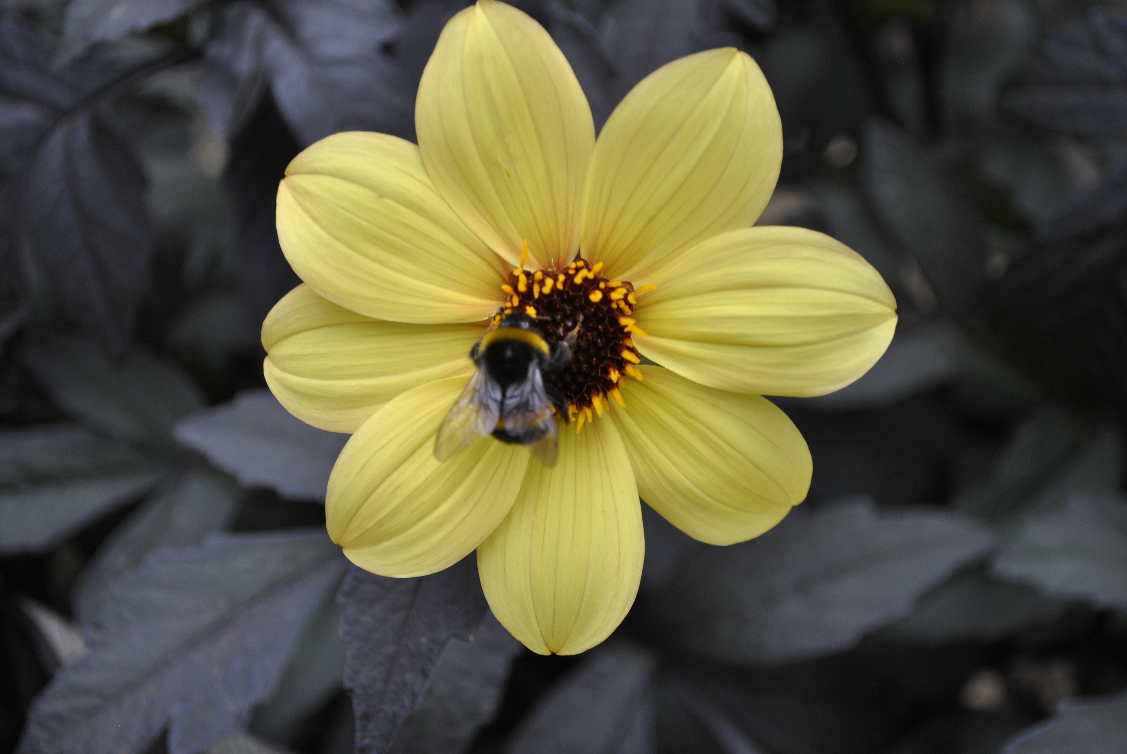 Dahlia ‘Mystic Illusion’ is a terrific cultivar with the darkest leaves of any I have seen. The bright and cheerful yellow flowers are a brilliant contrast and make it an outstanding combination from a distance. High water demand though and must be fed constantly to perform throughout the summer into autumn, so not easy to plant and leave for more than a few days. The deadheading is a chore too but, like Sweet Peas, is the secret to keeping it flowering.