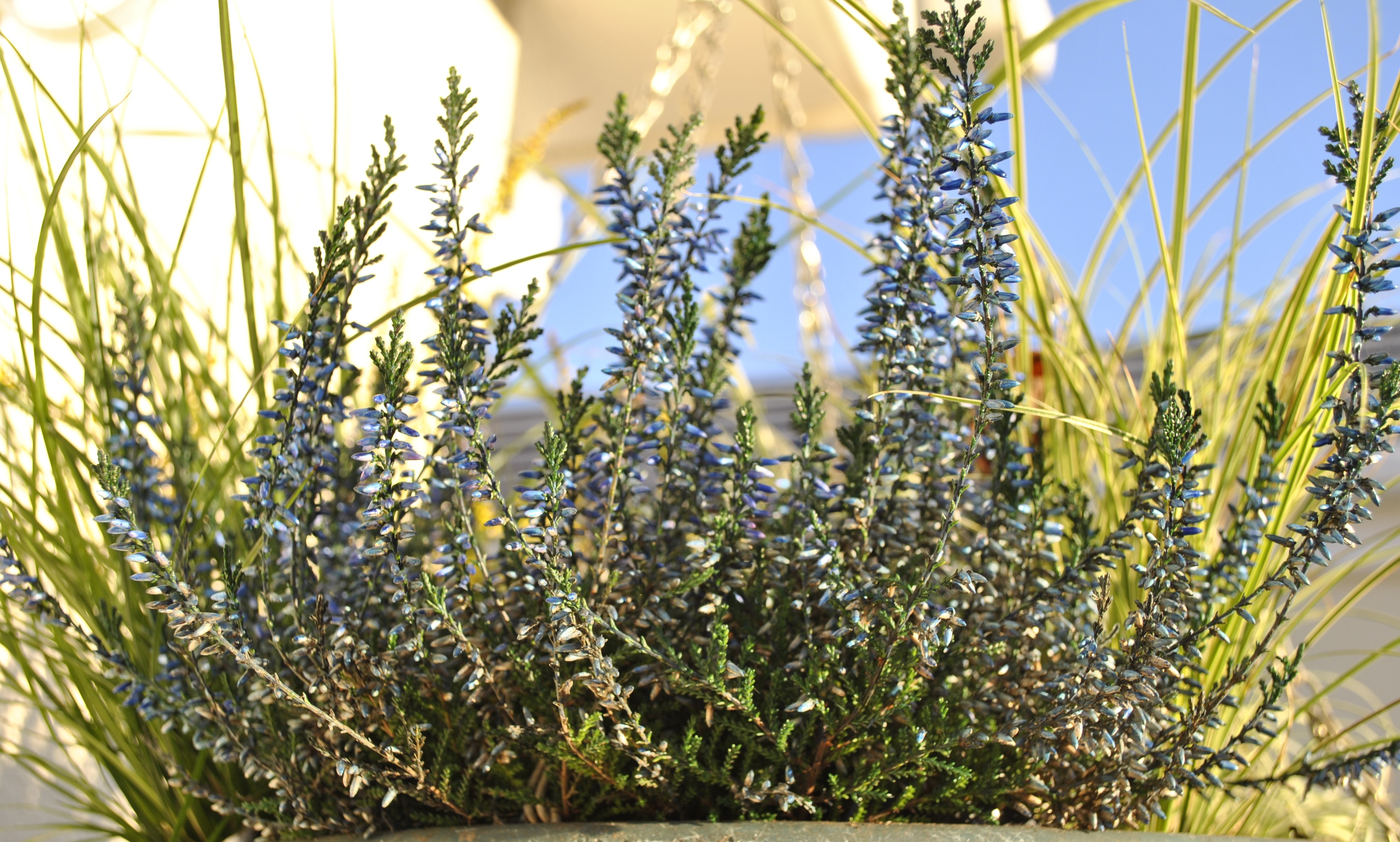 The blue one however, definitely not! My local nursery makes up hundreds of baskets and tubs for pubs and shops and tell me these sprayed heathers are popular because they will take the weather, look colourful all winter and don’t need any looking after!