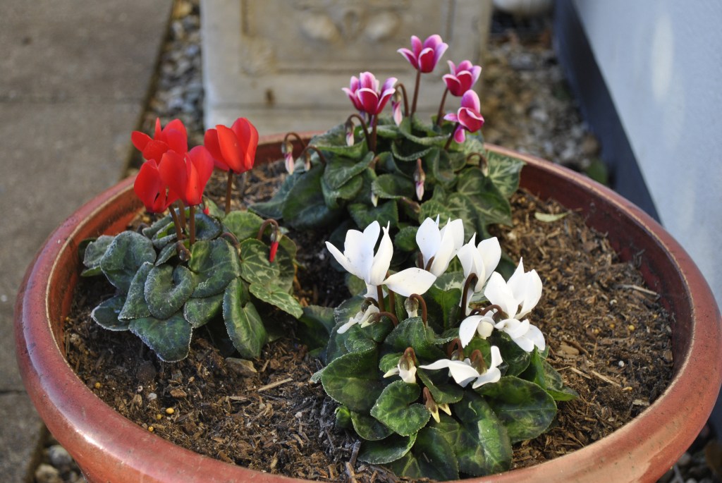 I agree with your usual response to Cyclamen but the ‘Head Gardener’ has them in pots in quite large numbers at present and they look surprisingly good! Meanwhile, I’m sulking over a potted Camellia Sasanqua White which produces no more than three flowers a week at best…