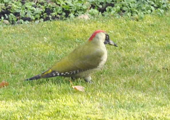 This Green Woodpecker is a regular visitor, mainly due to the number of resident ants in our lawn. He was there for over an hour on Thursday, poking his long beak into the grass and sucking up his sparse meal. How such a large and beautiful bird survives on a diet of ants I don’t know.