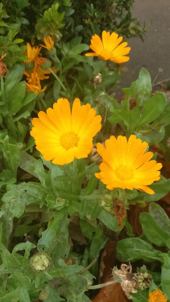 Ten years ago I made the mistake of planting some Callendula officinalis and have never managed to get rid of them since! They are real survivors and resist all attempts to eradicate them. They hide away unseen until , one day, ta dah! there they are again, in full flower and spreading their seed for yet another generation to come. They clash with everything else around them, grow absolutely anywhere, in any soil, in cracks and crevices, and literally never stop flowering. Some might call that the perfect garden plant!