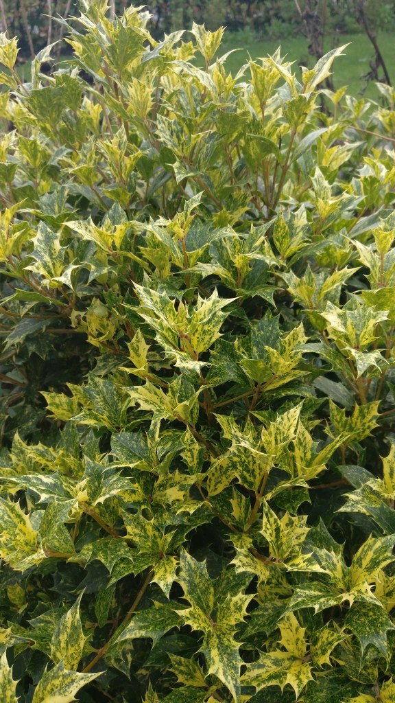 Sometimes, foliage is enough. This is particularly true if it is variegated, evergreen and glossy like this beautiful Osmanthus which is part of the ‘bones’ of the front border and is gently expanding into an attractive and trouble free shrub.
