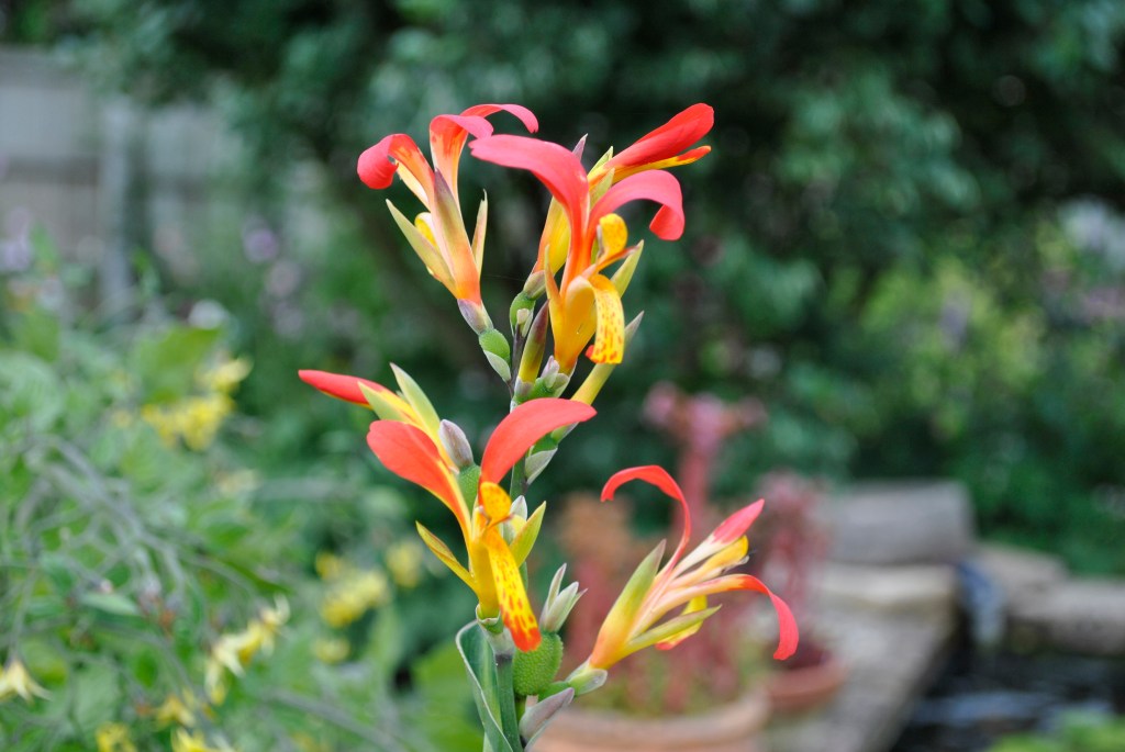 The little Canna iridiflora is easy from the ‘Indian shot’ seeds I save each year. It is pretty and adds an exotic touch in a pot on the patio. It is a great talking point and, if we ever have any visitors again, will no doubt do the same again this year. The huge Tropicana Cannas in the hot border now stay in the ground all year and reached almost 2m last year, but these diminutive versions are rather more tender and I treat them as annuals.