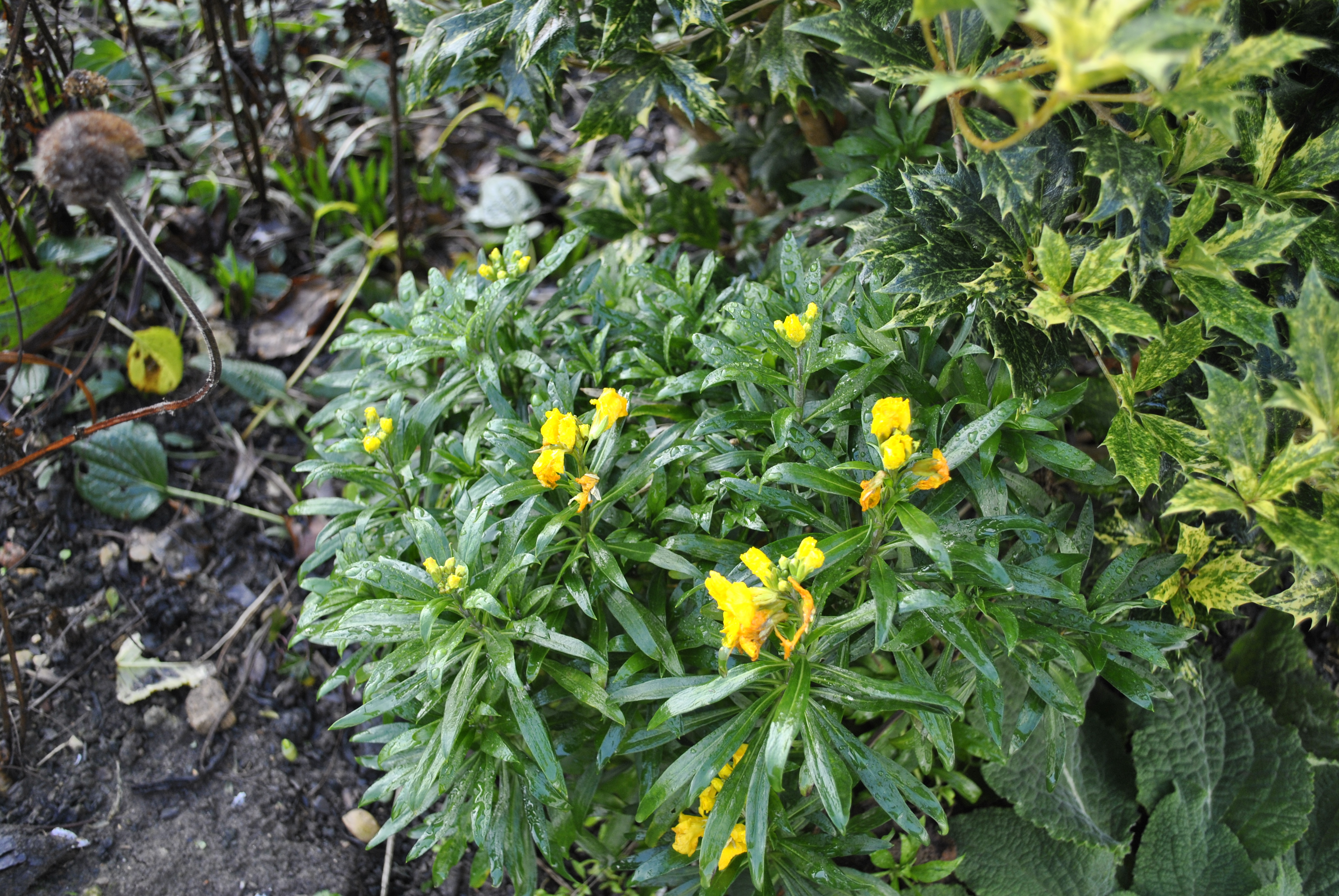 Seed sown wallflowers which are flowering in their second year. A welcome sight in amongst the detritus of the herbaceous border.