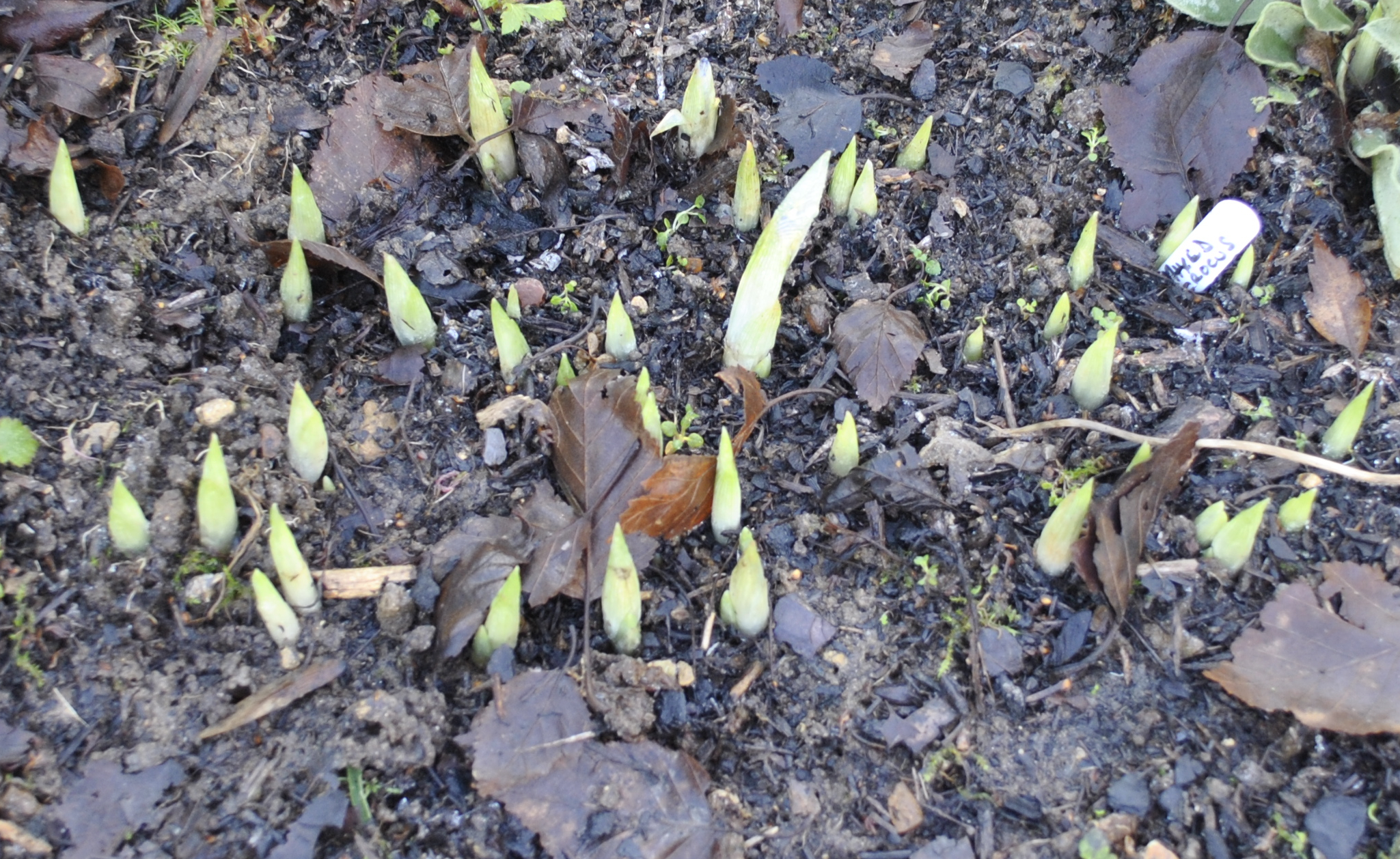 The new shoots of Thalictrum ‘Anne’ which will easily put on 2m of growth by June and display her beautiful mauve flowers, each one with bright yellow stamens which must shine like beacons to the bees,