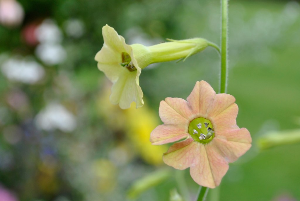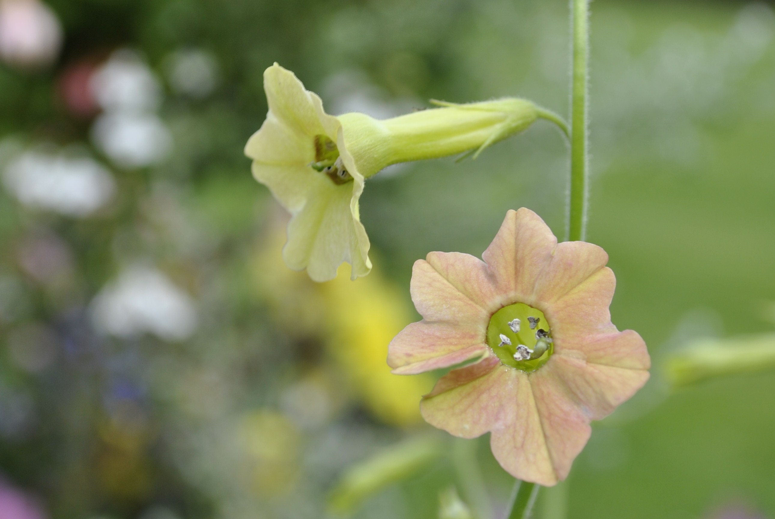 this unusual Nicotiana ‘Mutabilis’ which, as the name suggests, has different coloured flowers varying from lime green, yellow and pink to brick red and cream. The evening scent to attract pollinating moths is quite strong although not as strong as the sylvestris species. The saved seeds are from 2018 but enough should germinate.