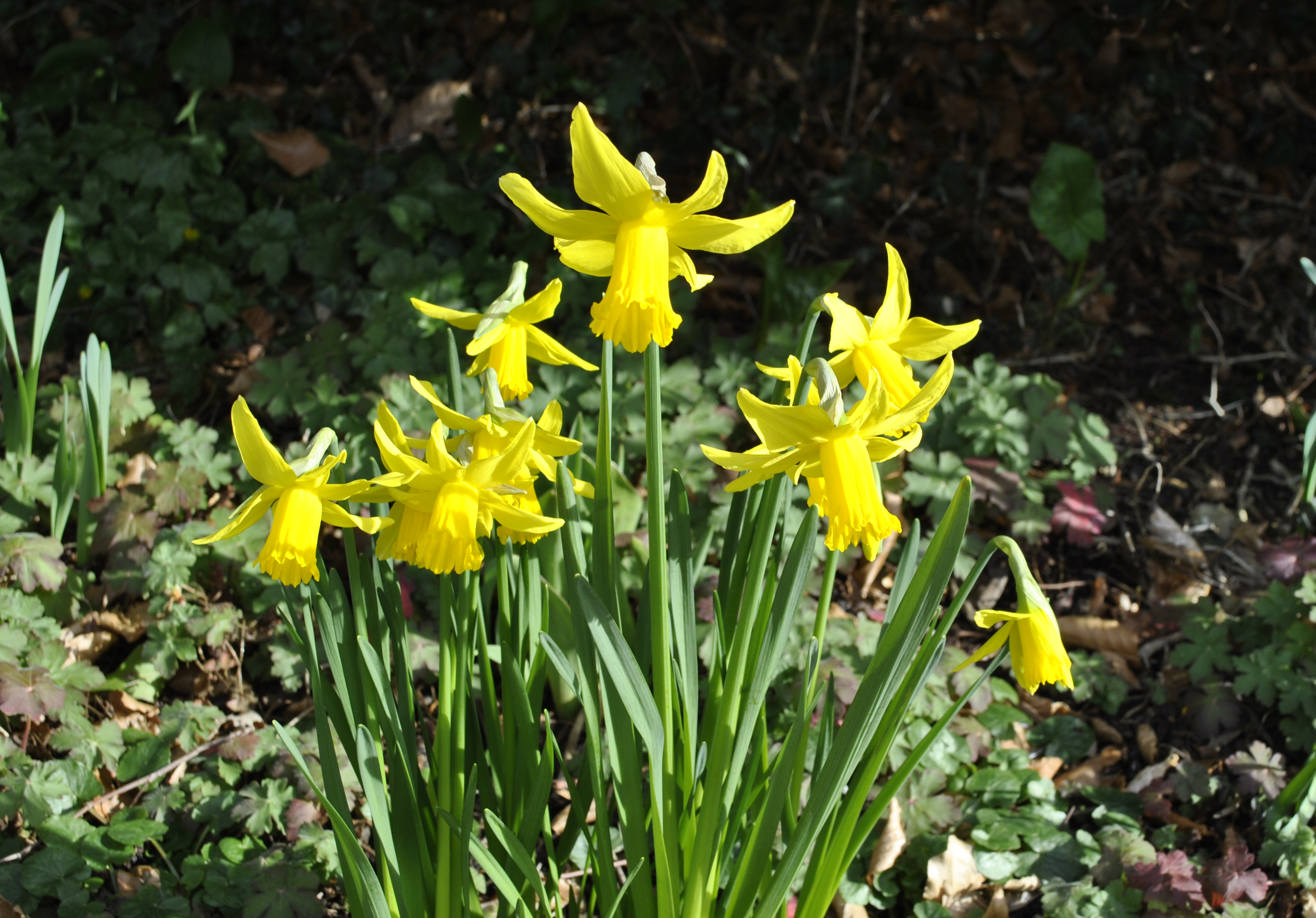 The early narcissus are now braving the wind and rain but only the toughest can stand up tall and straight like these. Others have their heads bowed and may not fully recover their posture. There must be a perfect ratio of height, stem thickness and flower size which makes some of the less fashionable stalwarts shrug off the elements, while other taller young ladies with spindly legs crumble under the weight of their Easter bonnets.