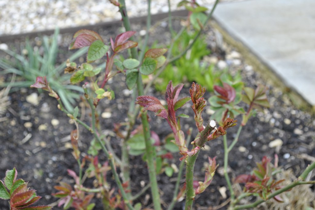 Roses, roses and more roses! This is their second year so they have only had a light pruning while they are still making roots. Sixteen new bareroot roses were planted last February and, I am relieved to say, they are all still alive!