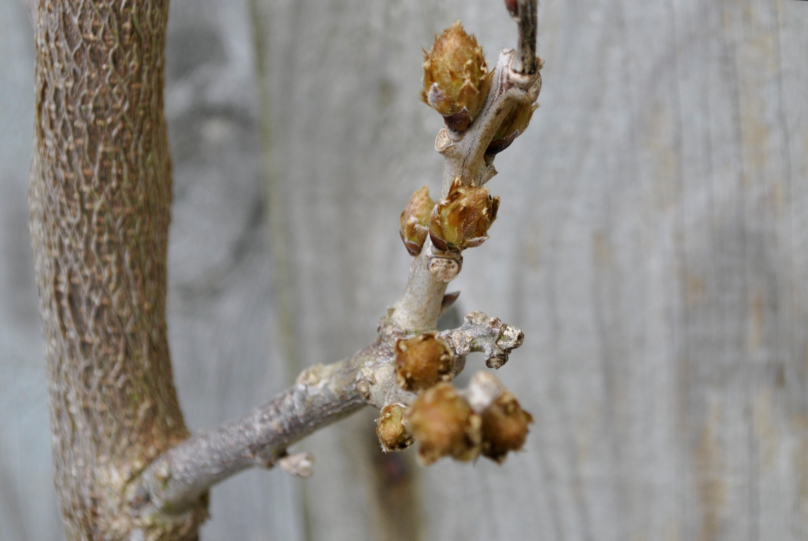 The fat Wisteria buds are swelling nicely ready to burst into flower in April. This one is Wisteria chinensis ‘Prolific’, a delightful pale lavender blue. Still a very young plant but one which should easily clothe this year’s project, a pergola to screen the south facing patio.
