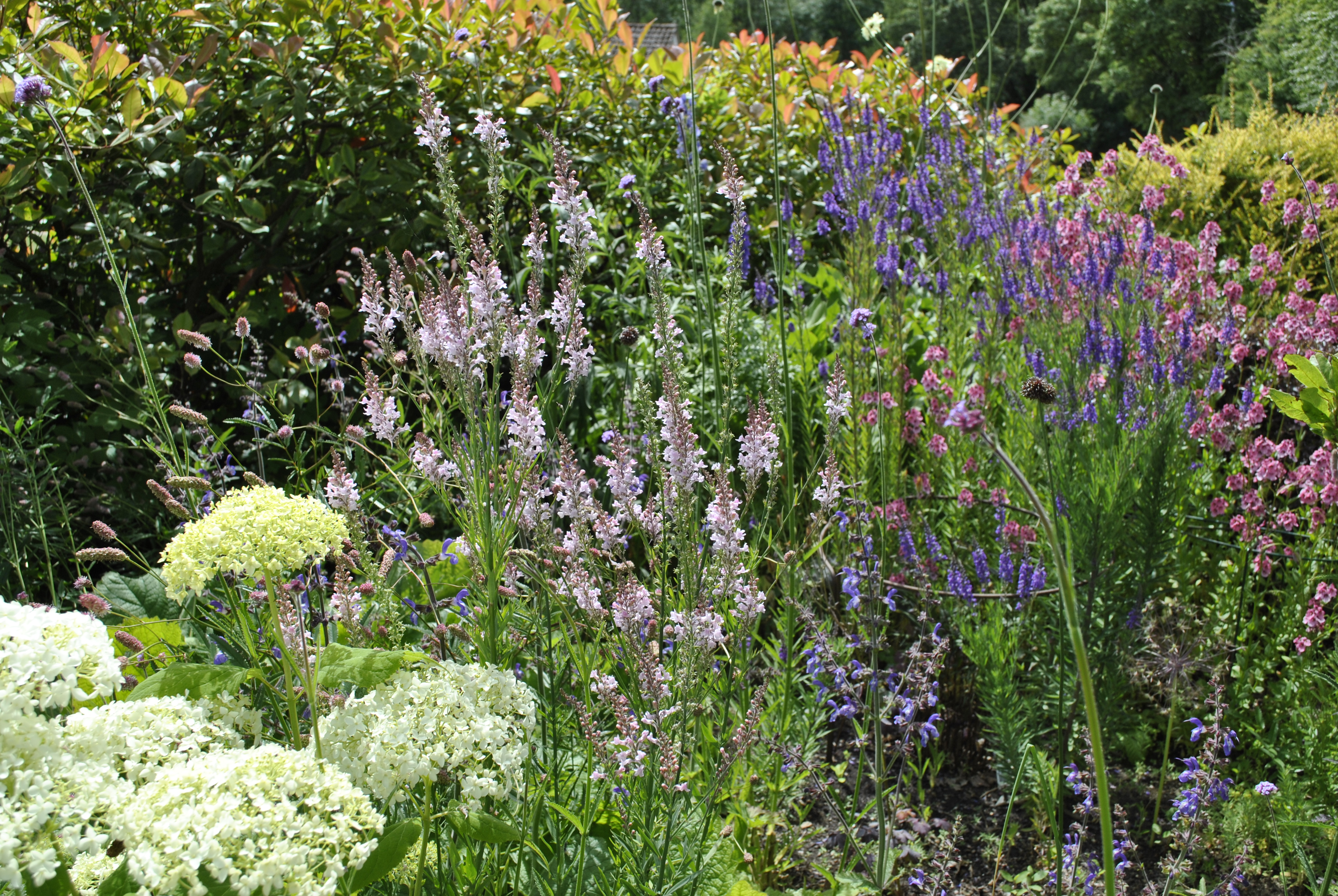 Good weather at last! Warm sunny days have boosted growth in already moist soil and things are looking great! This shot of the middle garden captures the intensity of the late afternoon sun. The Thalictrum, in particular, has really enjoyed all the rain.