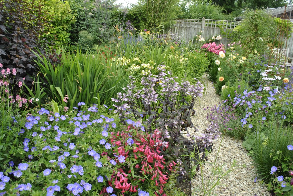 I love the way plants mingle and merge with each other, jostling for position and trying to outdo each other for light and space. Geranium ‘Rozanne’ is an expert and uses the other plants to give her a leg up.