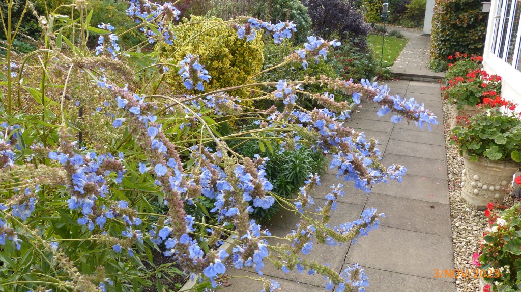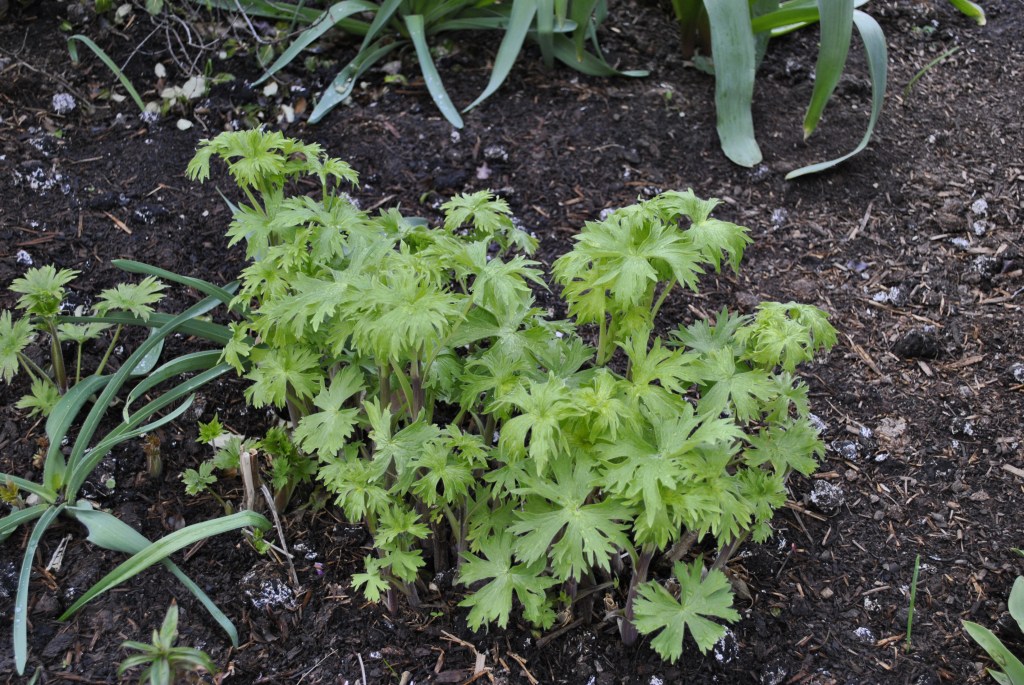 I sowed seed of Phlomis russeliana many years ago which did well and have gradually self-seeded in various parts of the garden, mostly in places I don’t mind. They seem to like the company of other plants and squeeze themselves into tight spaces. For what is supposed to be a Mediterranean sun lover, they certainly like my clay!