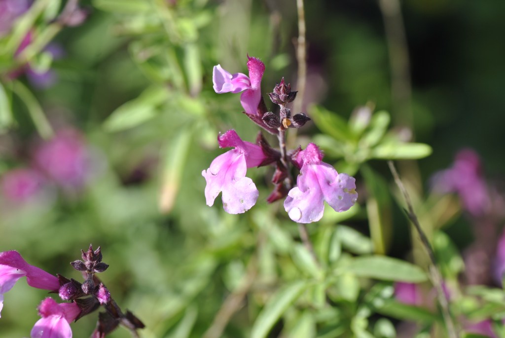 There are hundreds of shrubby salvias available and they are all good, but some are better than others. Personally, I think this is one of the best, Salvia greggii ‘Icing Sugar’ which is a double pink variety emerging from dark, almost black buds. Given to me last year by a friend, it is thriving in a pot at the moment while I try to find a space for it!
